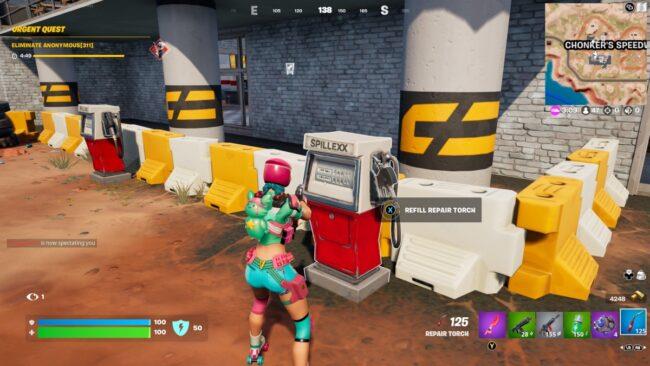 Ils peuvent être trouvés assez loin, mais un bon pari est de rechercher une torche de réparation dans tous les garages de la carte Fortnite. Pointez simplement la torche de réparation sur ce que vous voulez réparer, puis maintenez votre entrée de feu (R2/RT sur un contrôleur). La torche de réparation commencera alors à réparer votre véhicule de la même manière que vous faites le plein de votre véhicule.