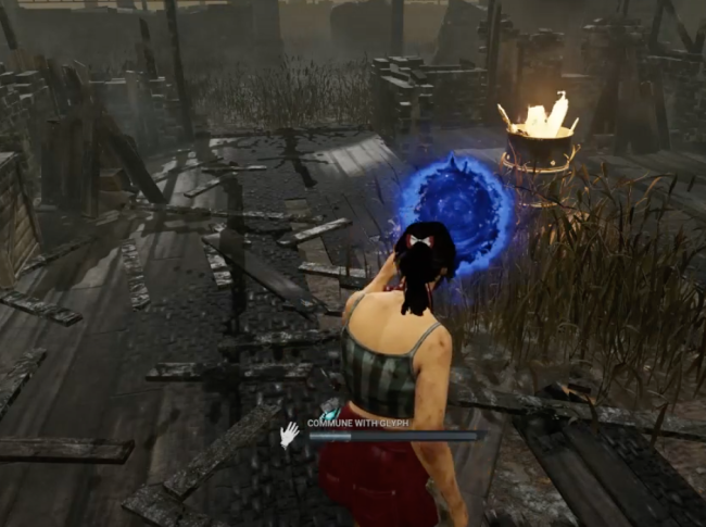Interagiere mit der blauen Glyphe, um mit ihr zu kommunizieren (über Dead By Daylight)
