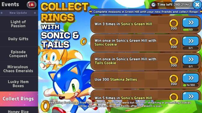 5. Beim Erhalt von Sonic Cookie können Spieler ein zusätzliches sammeln 5x Seelensteine von Sonic Cookie aus den Sammelringen.